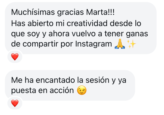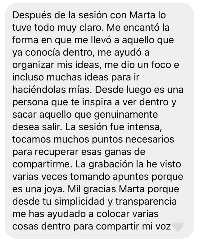 *Política de cambios y devoluciones: la compra realizada es para una sesión presencial con Marta Salehi. Tienes un período de 15 días para agendar la sesión comprada. Una vez agendada la sesión no hay cambios de fecha ni devolución de la cantidad abonada por ninguna causa externa a Marta Salehi.